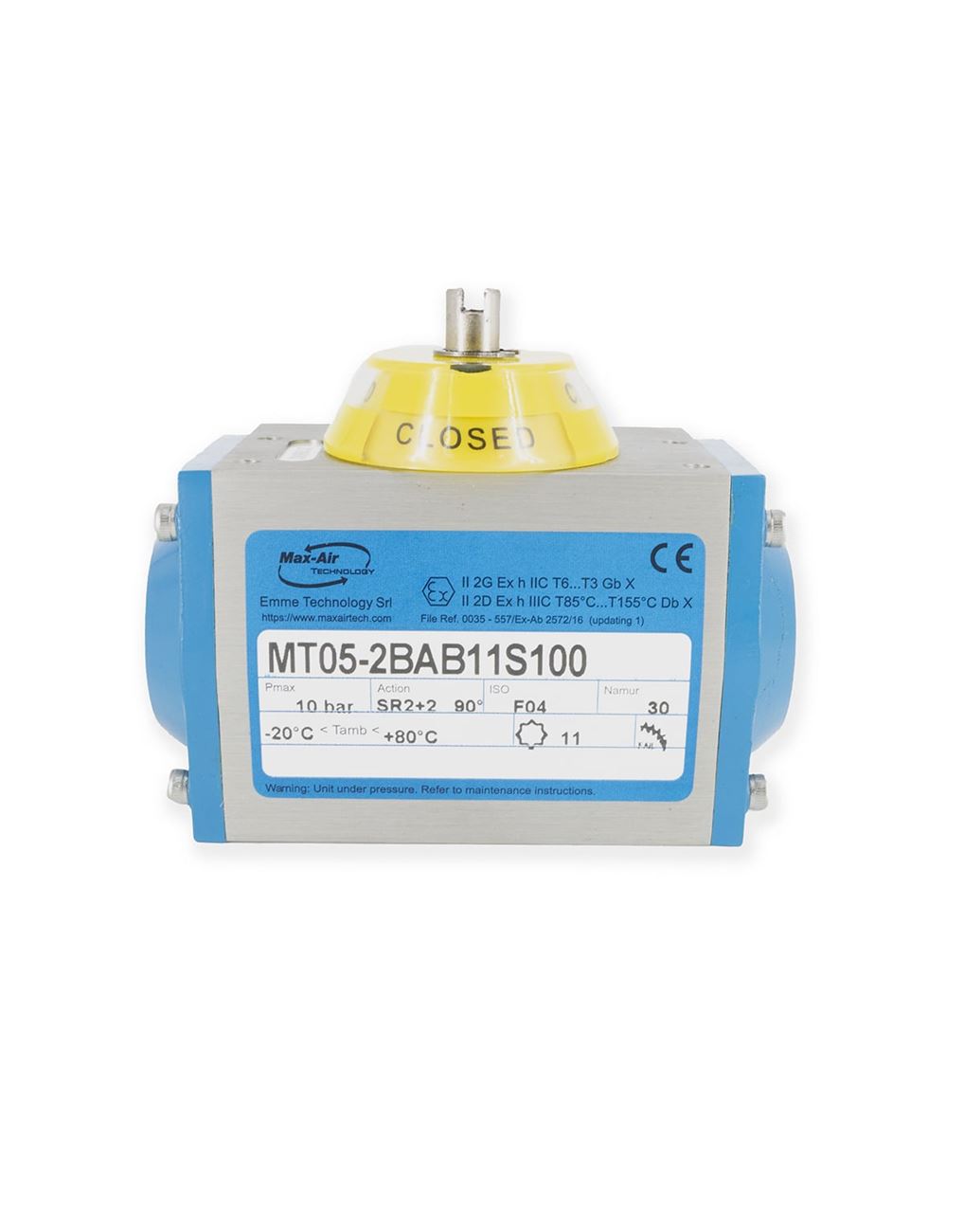 EMME Max-Air MT60SR5 Πνευματικός ενεργοποιητής Περιστροφικός 90o απλής ενέργειας με θέση ηρεμίας κλειστή από αλουμίνιο 482.7 Nm F10/F14 Αστέρι 36x36mm ATEX / Ex 3 - 8 bar