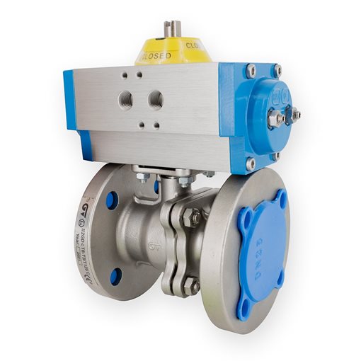 Genebre 2528 Σφαιρικοί κρουνοί 2-οδοι Ολικής διατομής, AISI 316 / AISI 316 με φλάντζες R-PTFE PN40 μήκους 140mm με Πνευματικό ενεργοποιητή σε θέση ηρεμίας κλειστή 4,5 - 8 bar DN40 PED